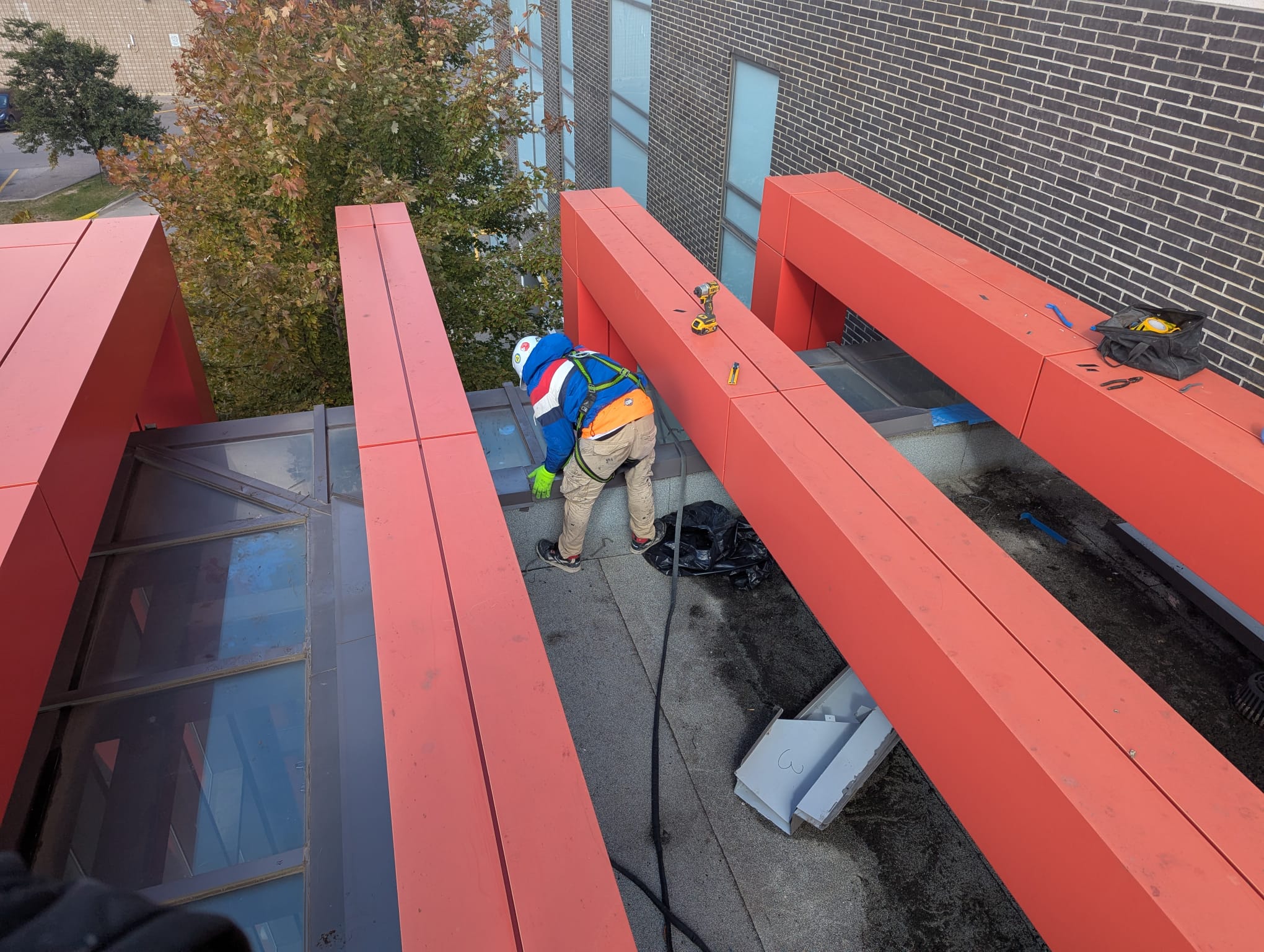 Investigated leaks and repaired curtain wall with new barriers, brick, and flashing.