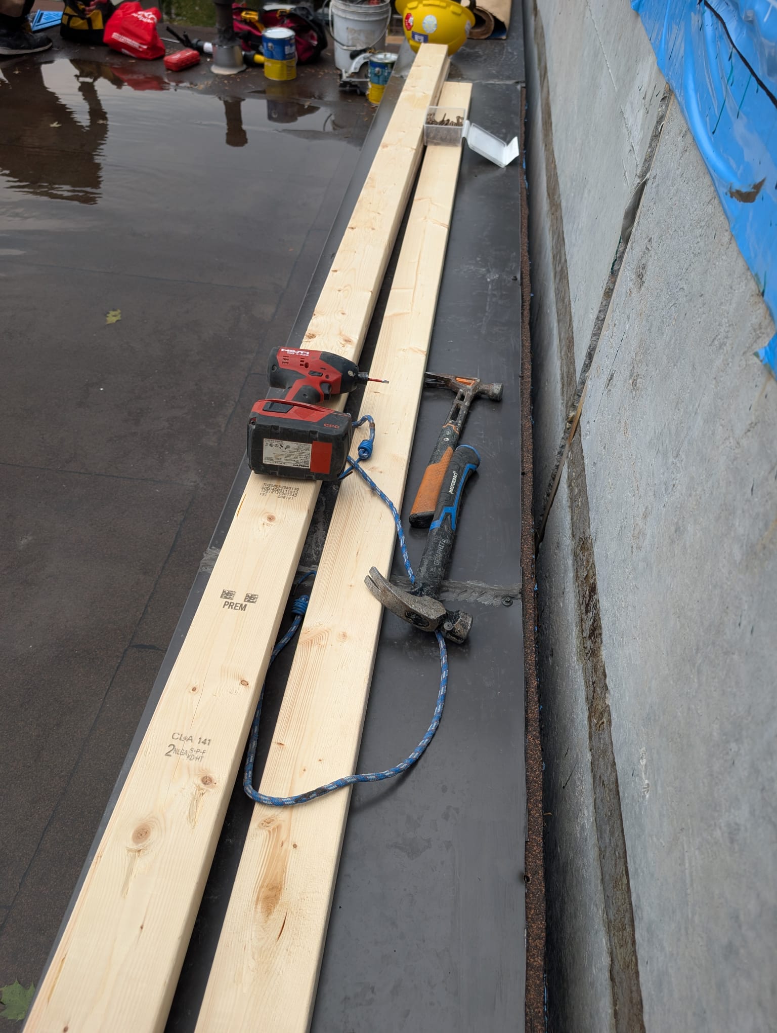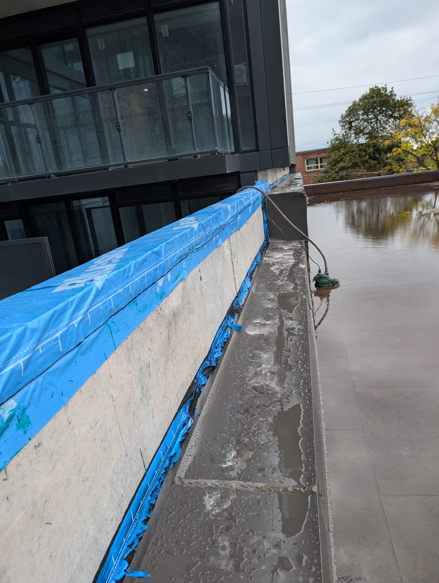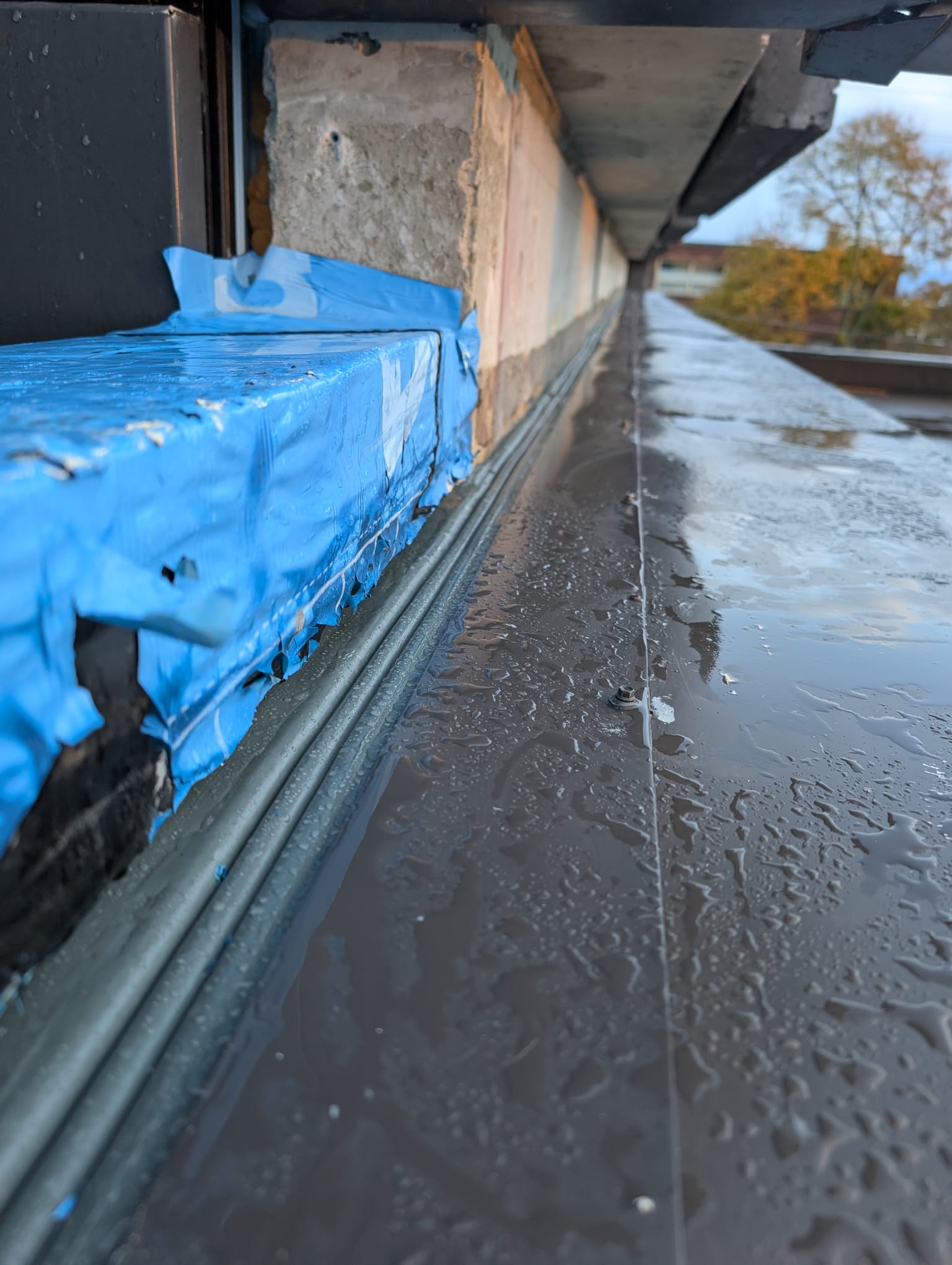After installing the Emseal joint, we installed flashing on top of it to avoid water sitting on it.